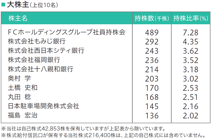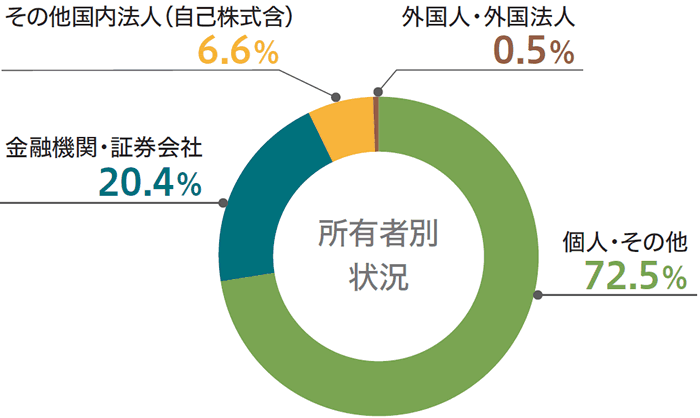 大株主の状況(2025年6月30日現在) 会社が発行する株式の総数…12,000,000株 発行済株式の総数…6,726,630株 (自己株式42,853株を除く) 株主数…4,023名(前期比771名増) 所有地別状況 (注)自己株式を含む(2025年6月30日現在) 所有者別状況 (注)自己株式を含む(2025年6月30日現在)